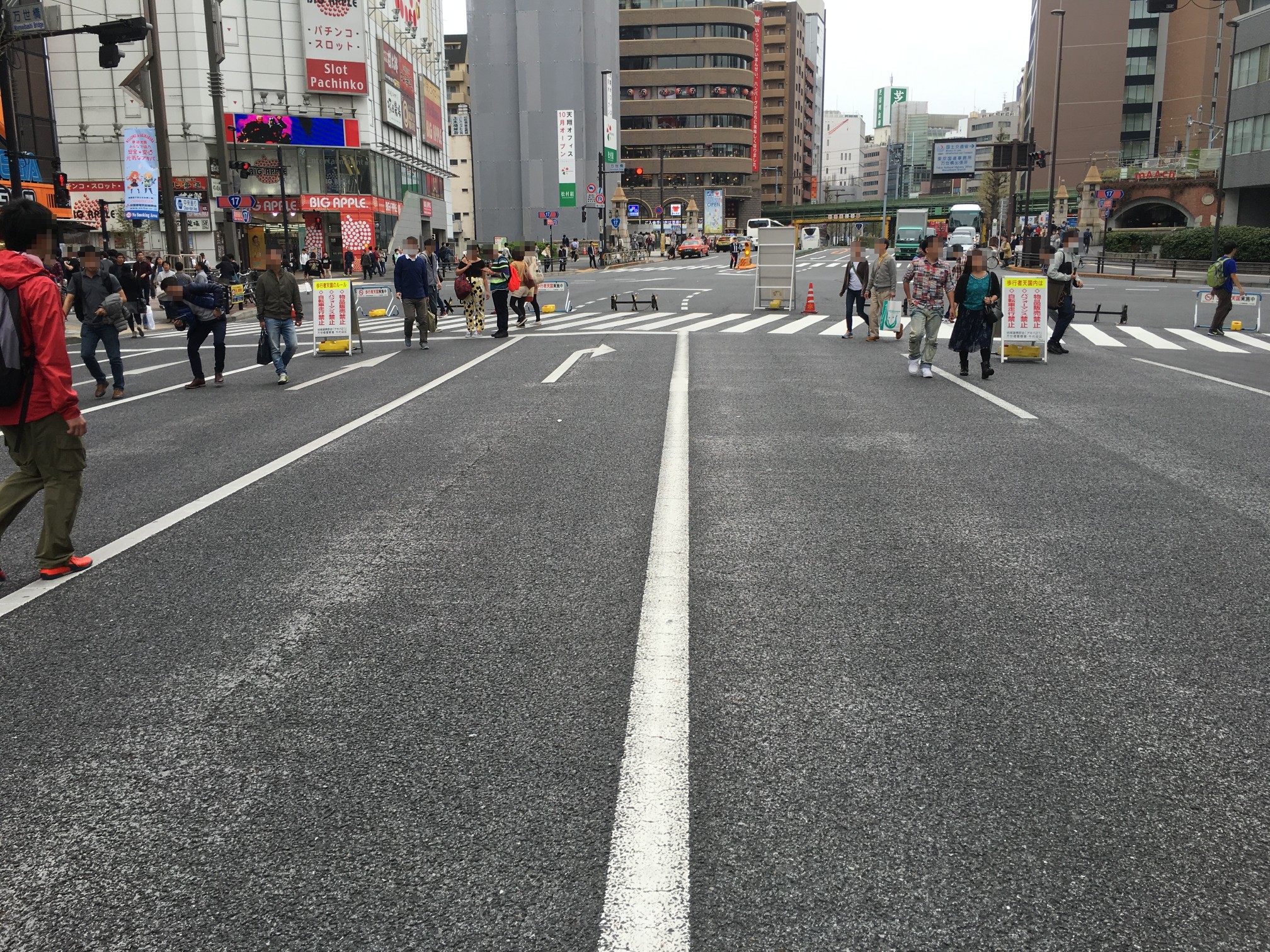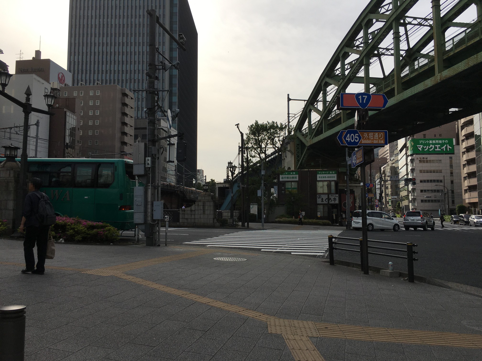 点字ブロックは昌平橋ビルの工事でズラされてきたものだし、アスファルト質のところはガードレール増設した部分だし……