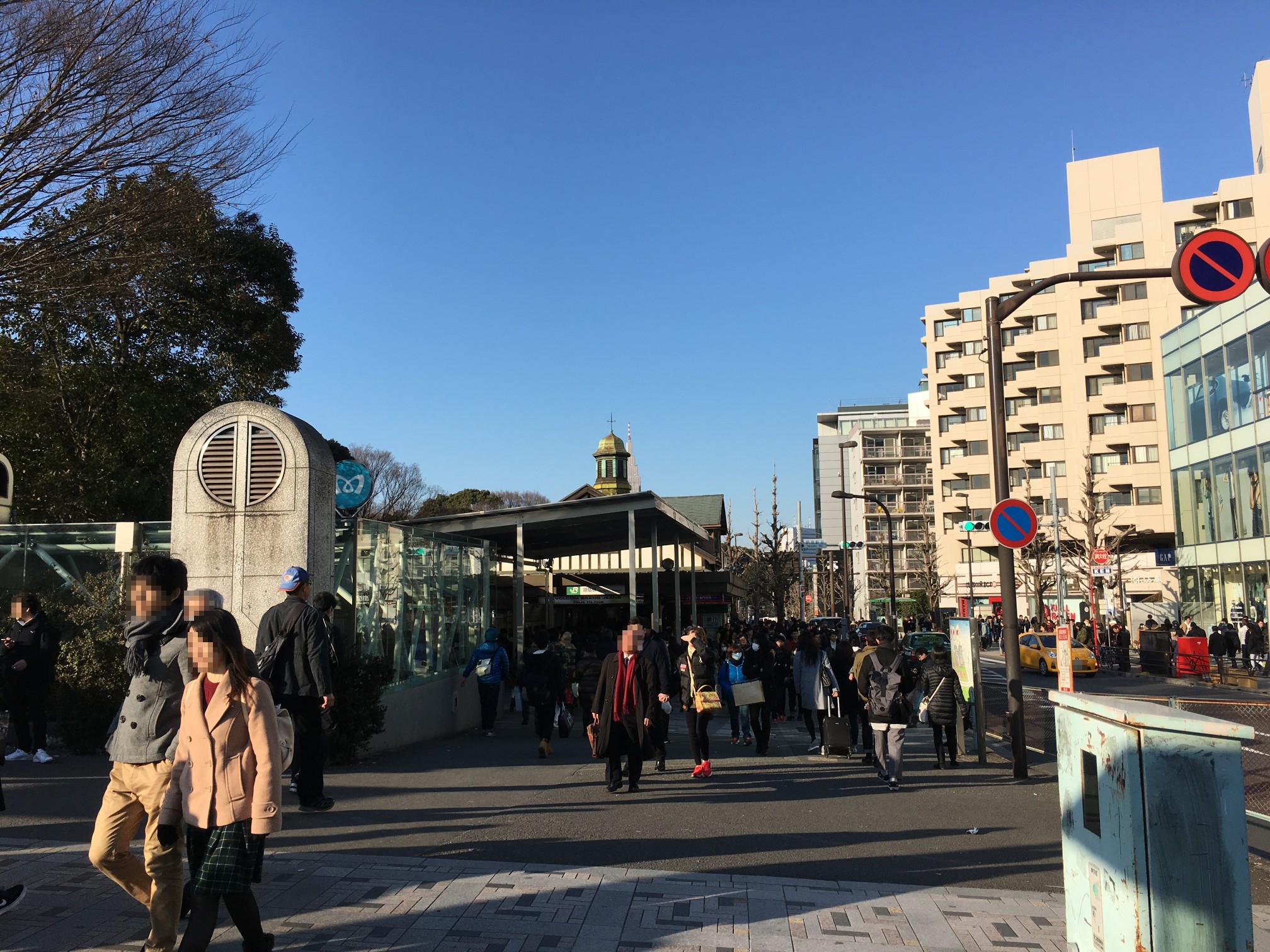 原宿駅の特徴的な駅舎があるので、間違えようがないですね。