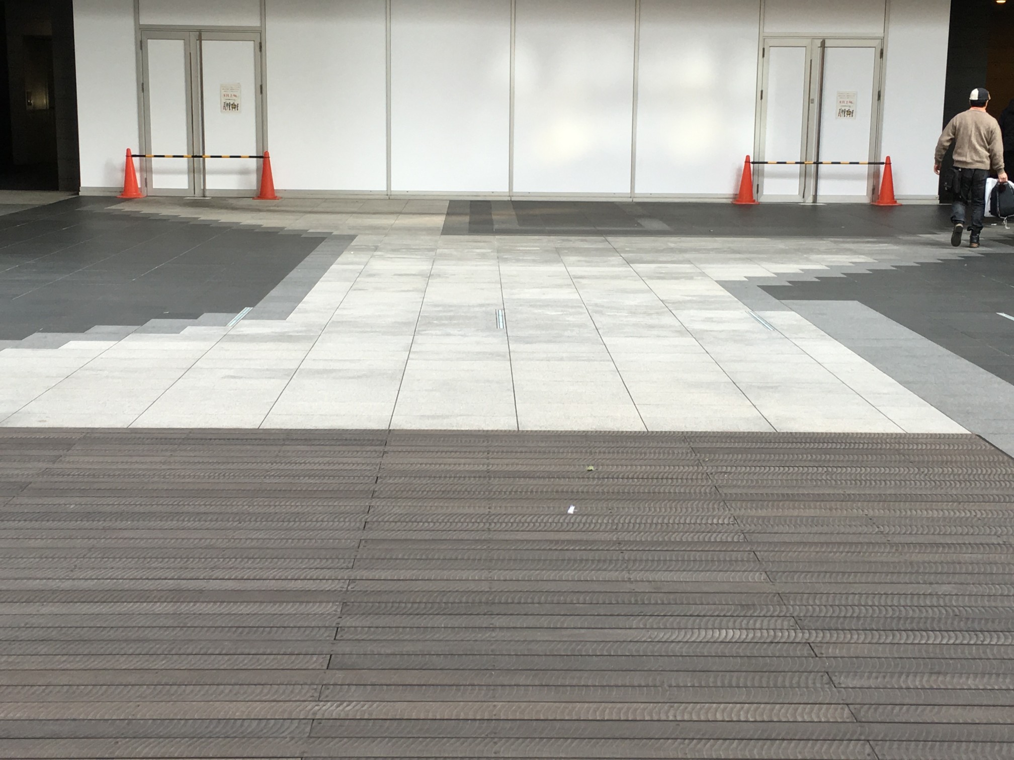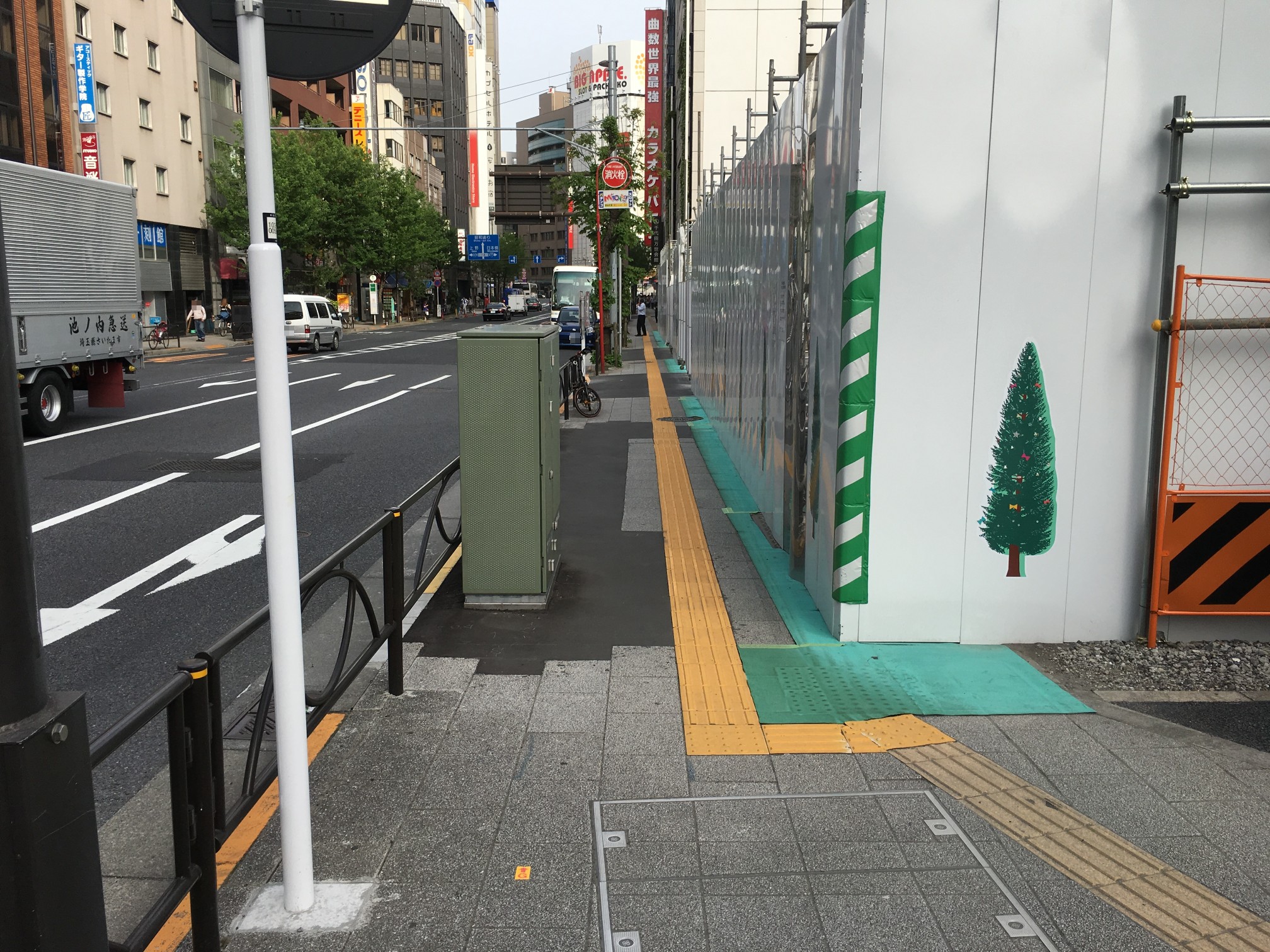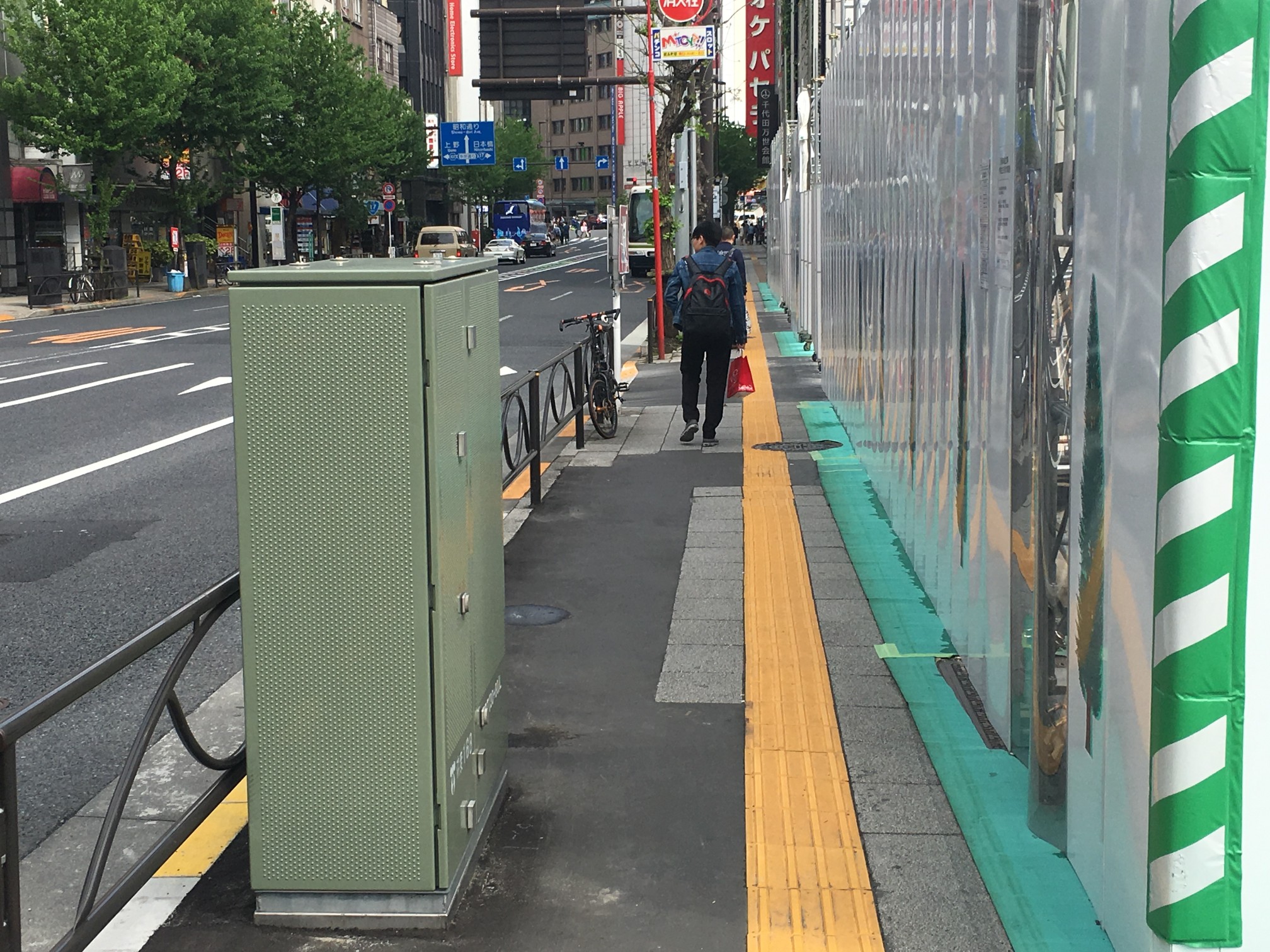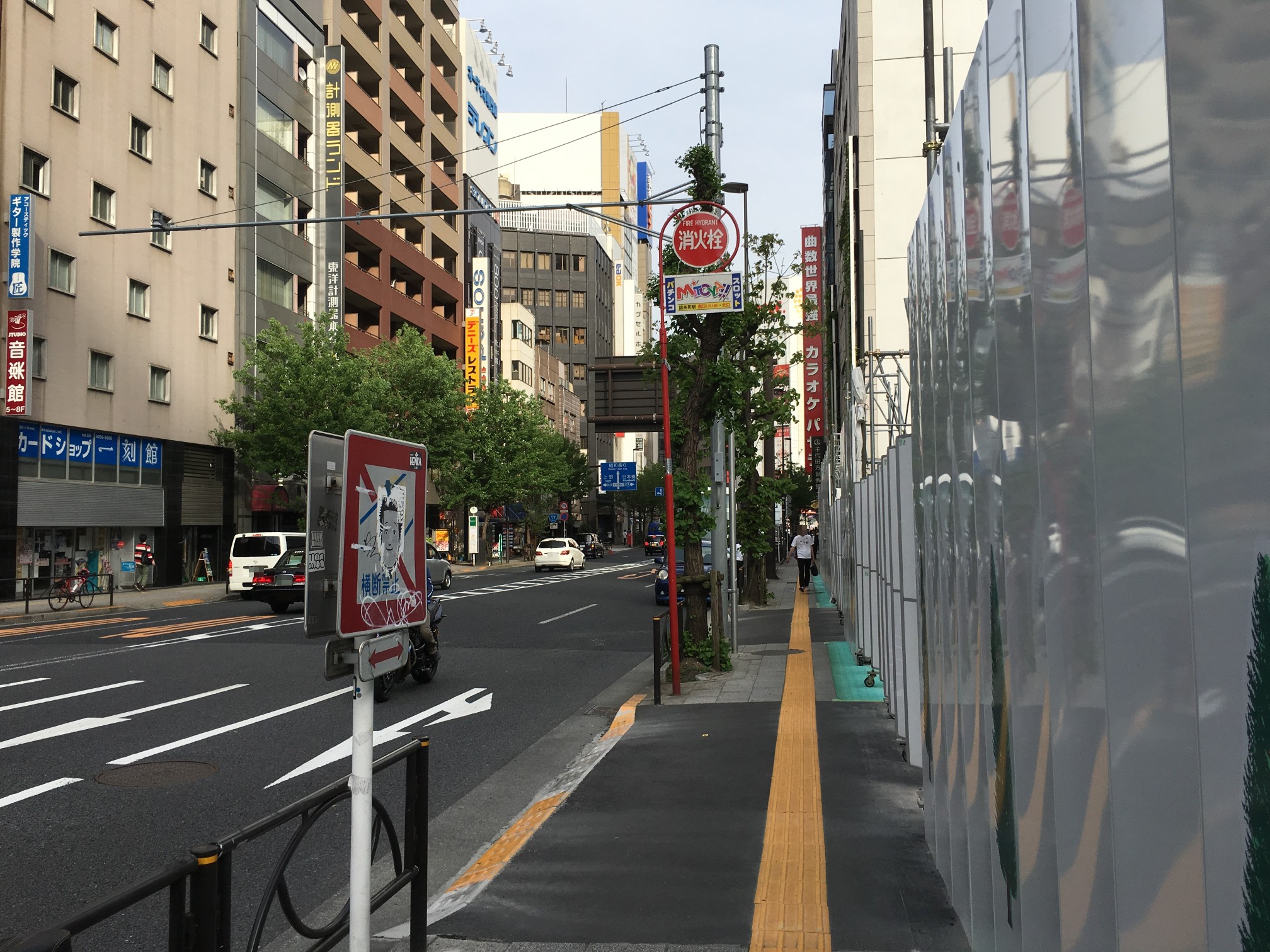 点字ブロックは昌平橋ビルの工事でズラされてきたものだし、アスファルト質のところはガードレール増設した部分だし……