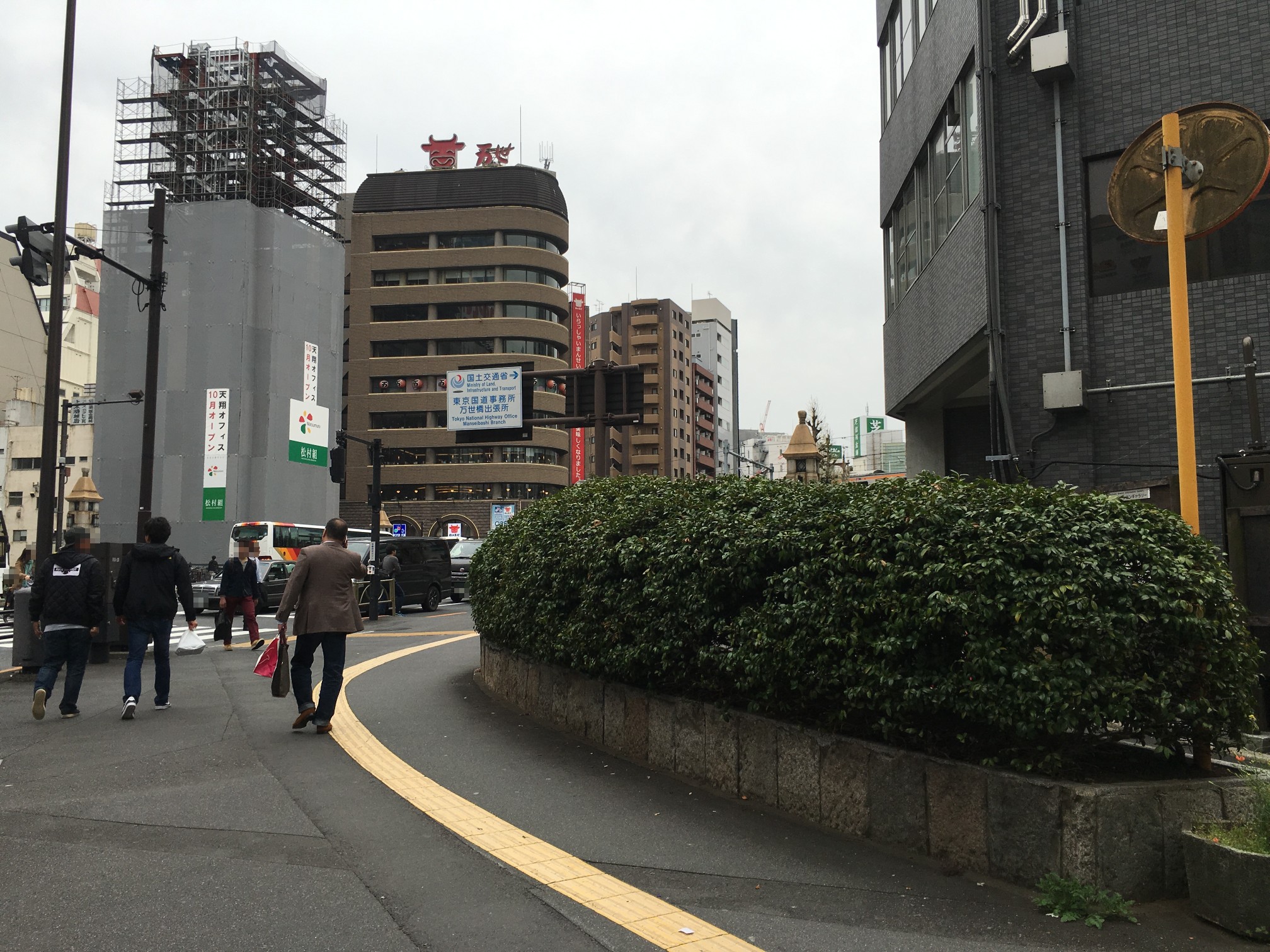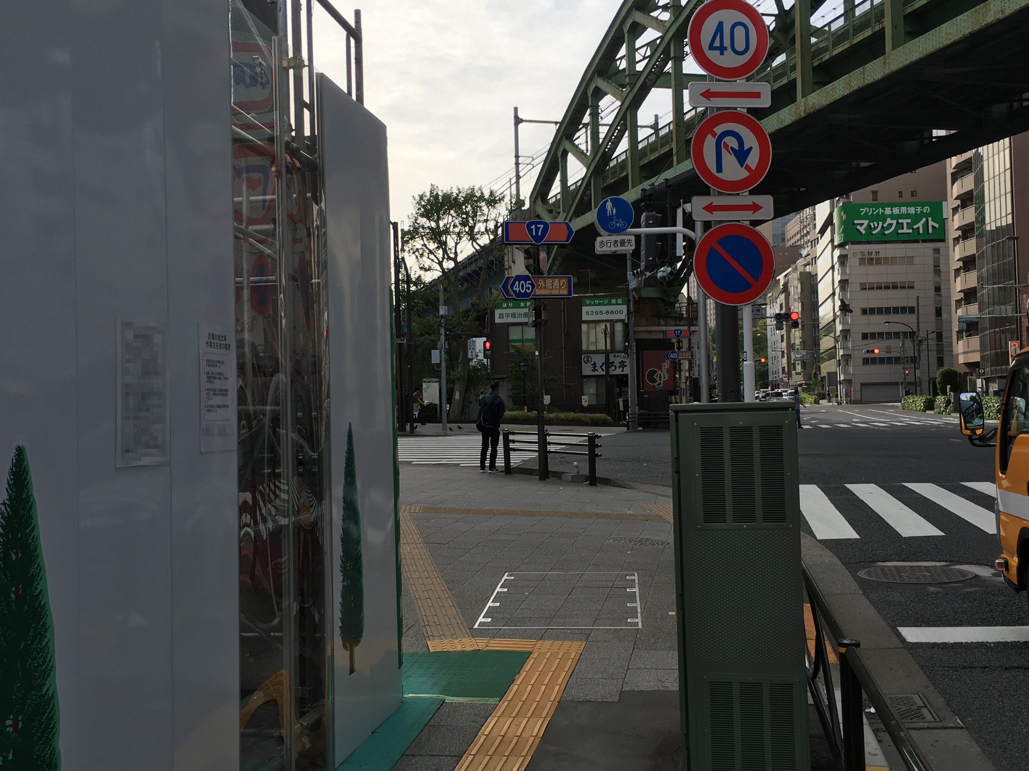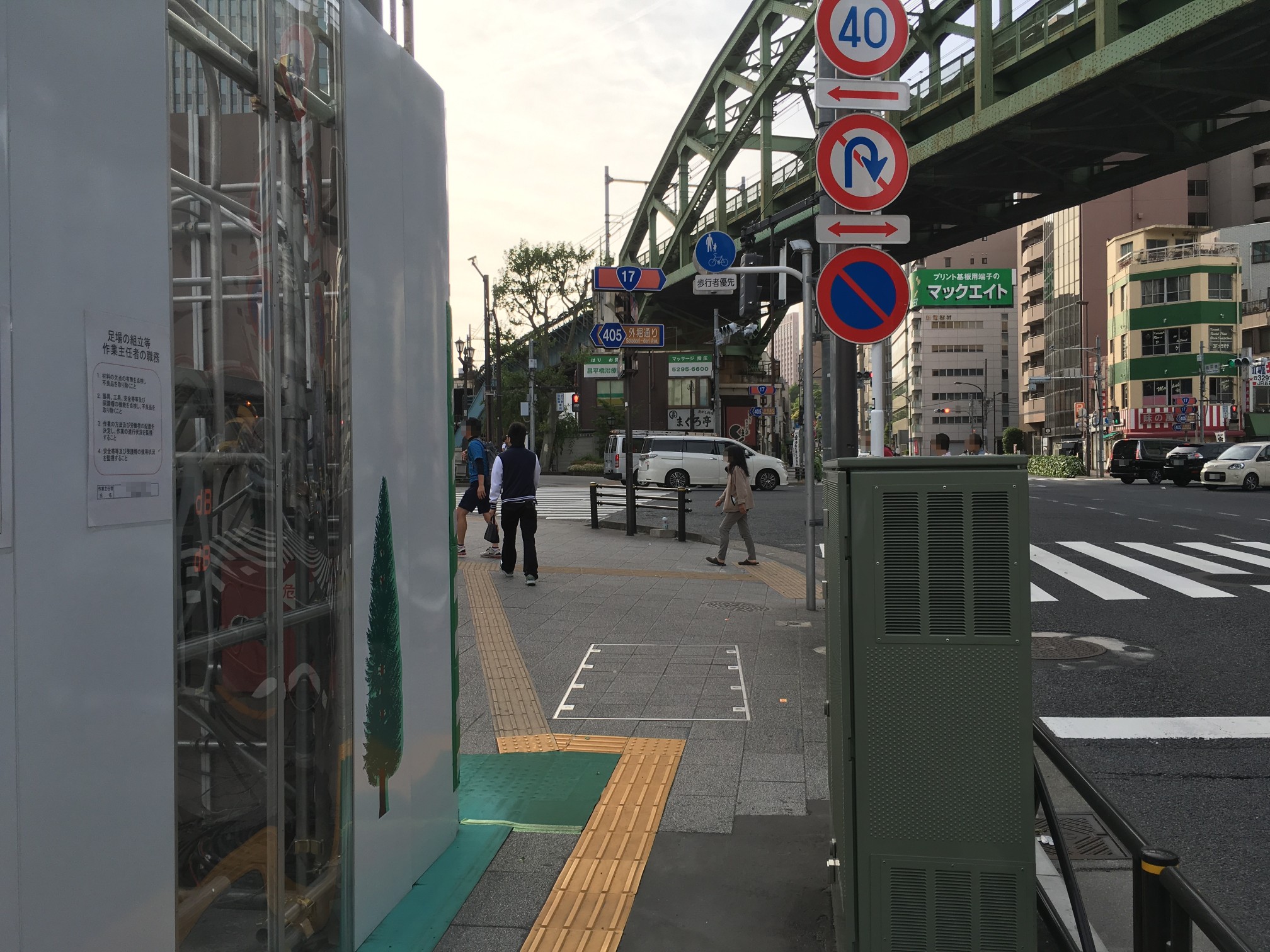 点字ブロックは昌平橋ビルの工事でズラされてきたものだし、アスファルト質のところはガードレール増設した部分だし……