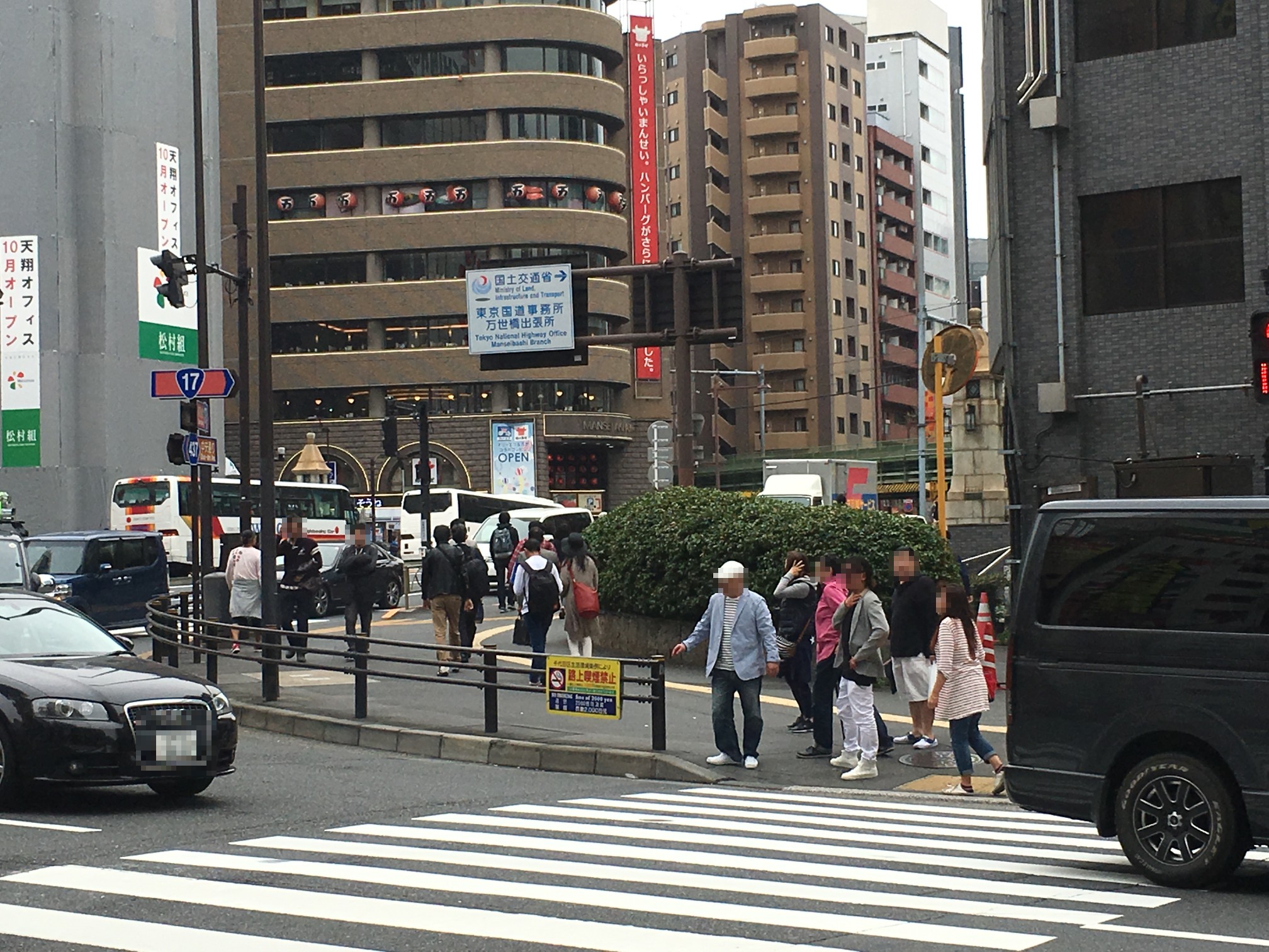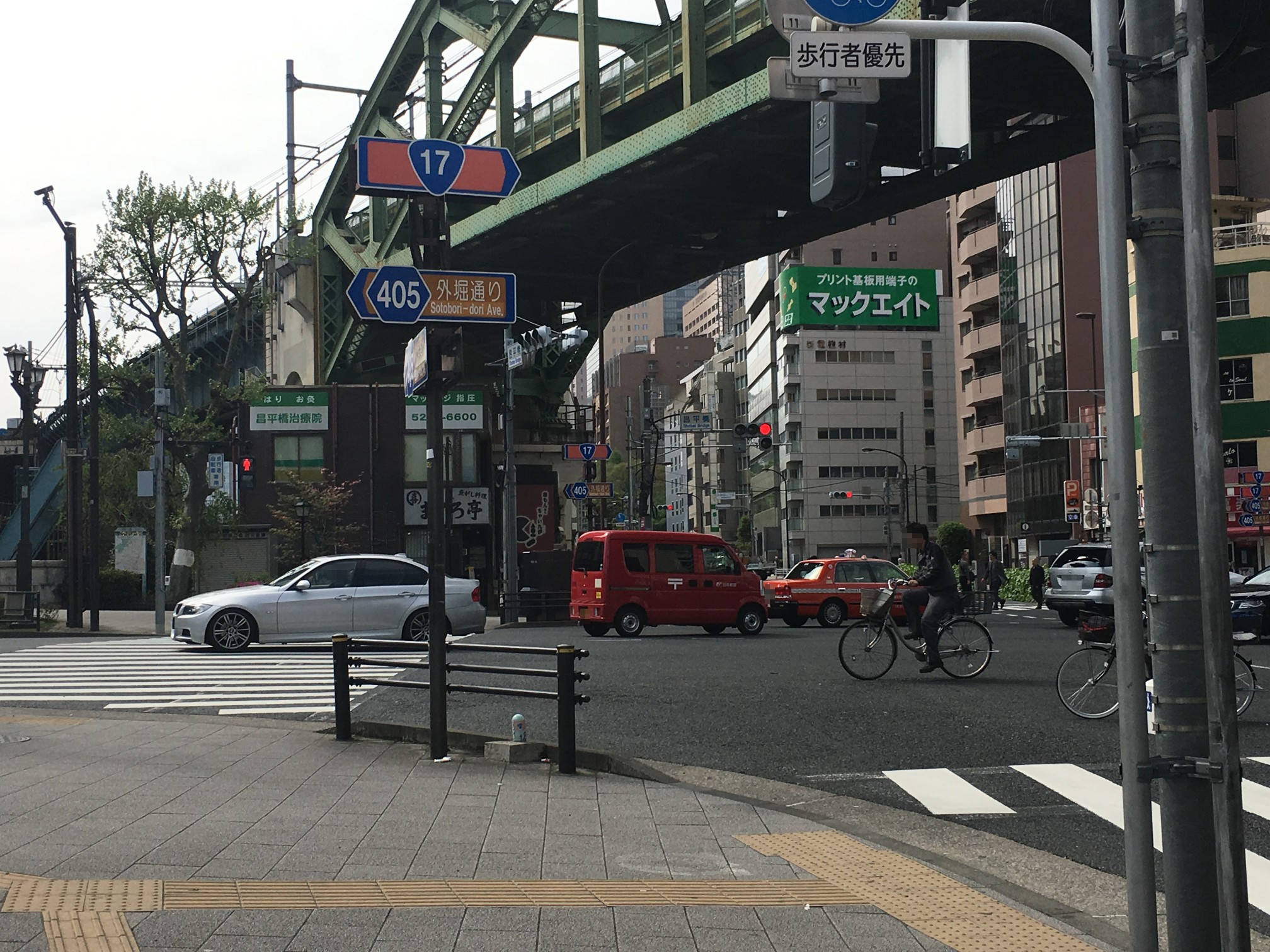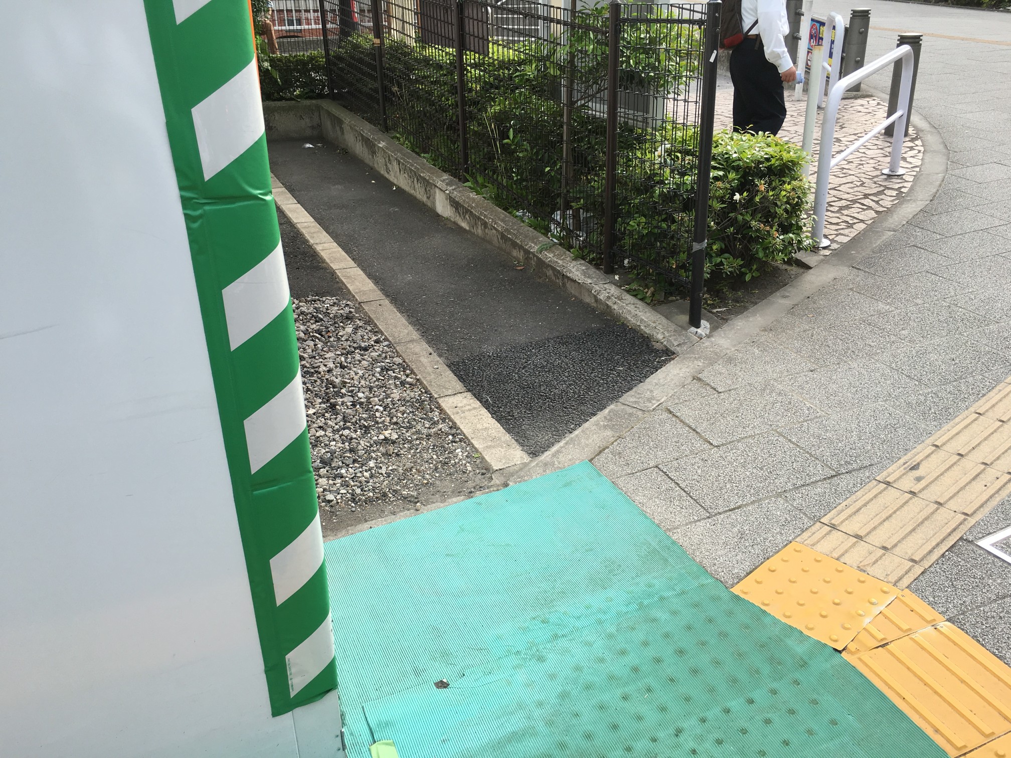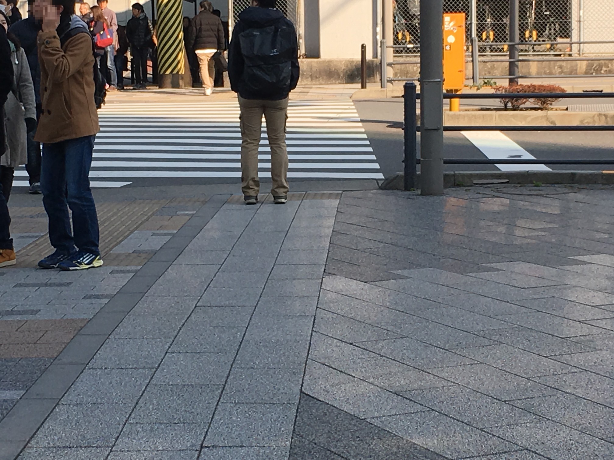 点字ブロックは昌平橋ビルの工事でズラされてきたものだし、アスファルト質のところはガードレール増設した部分だし……