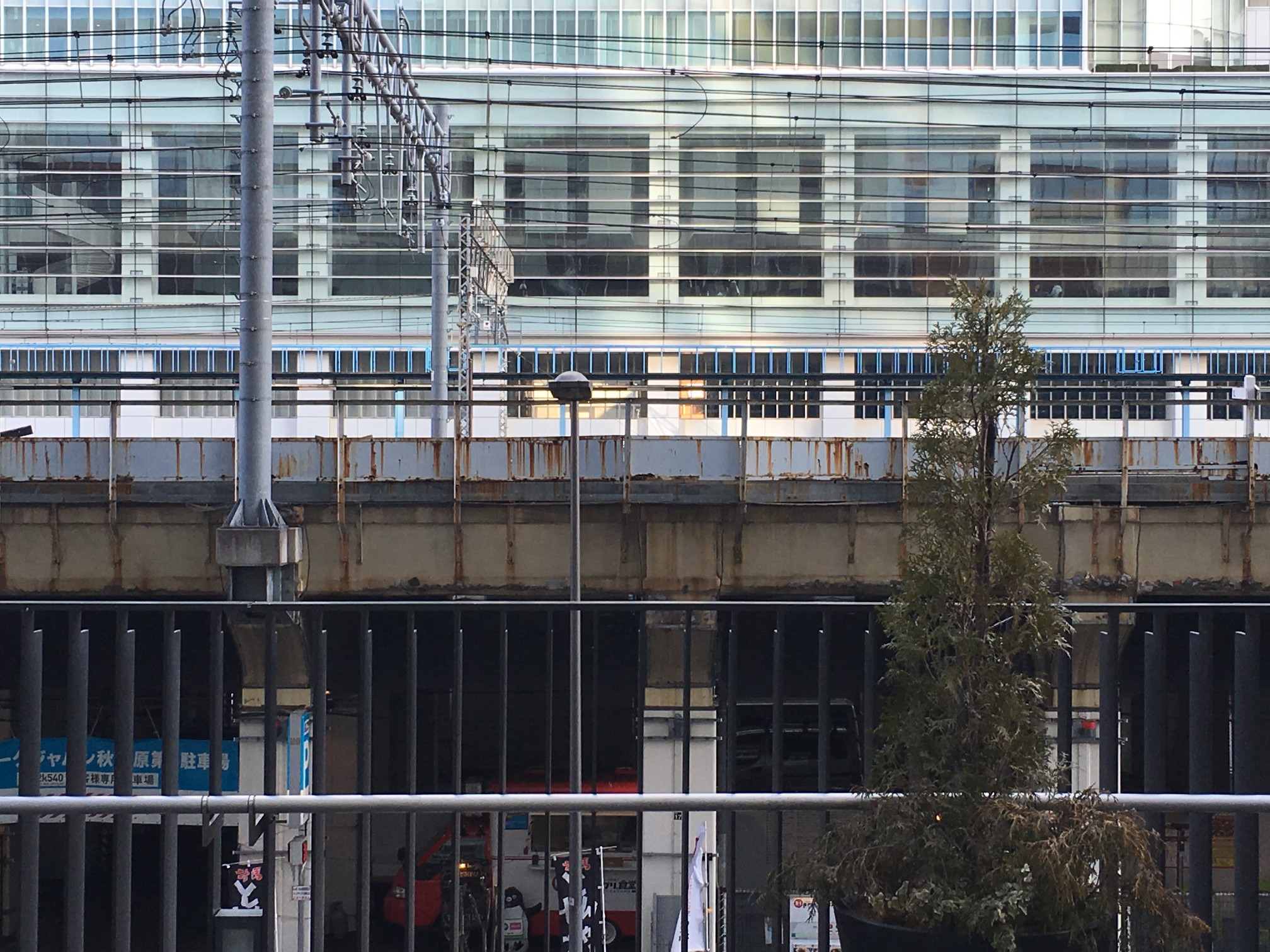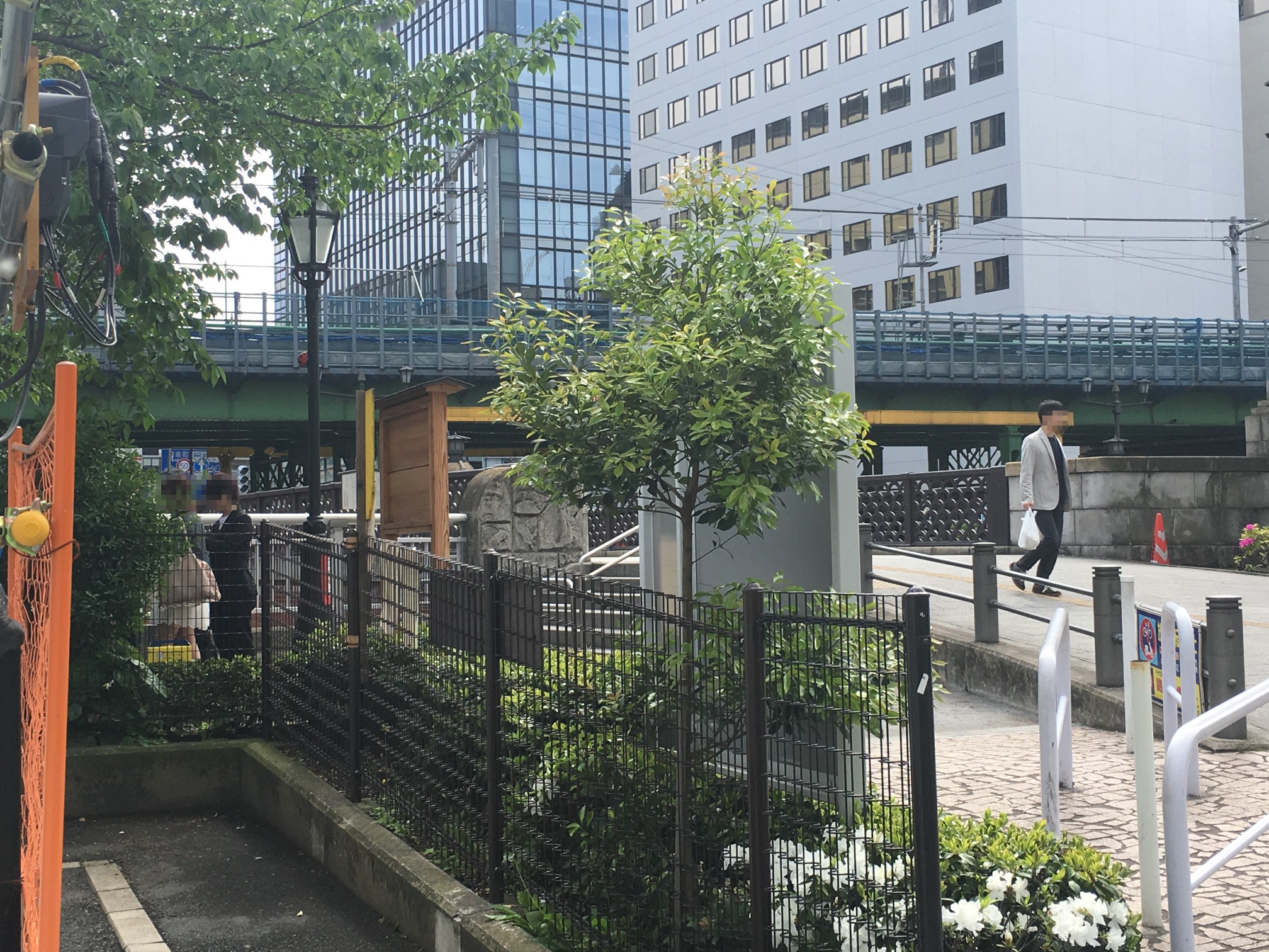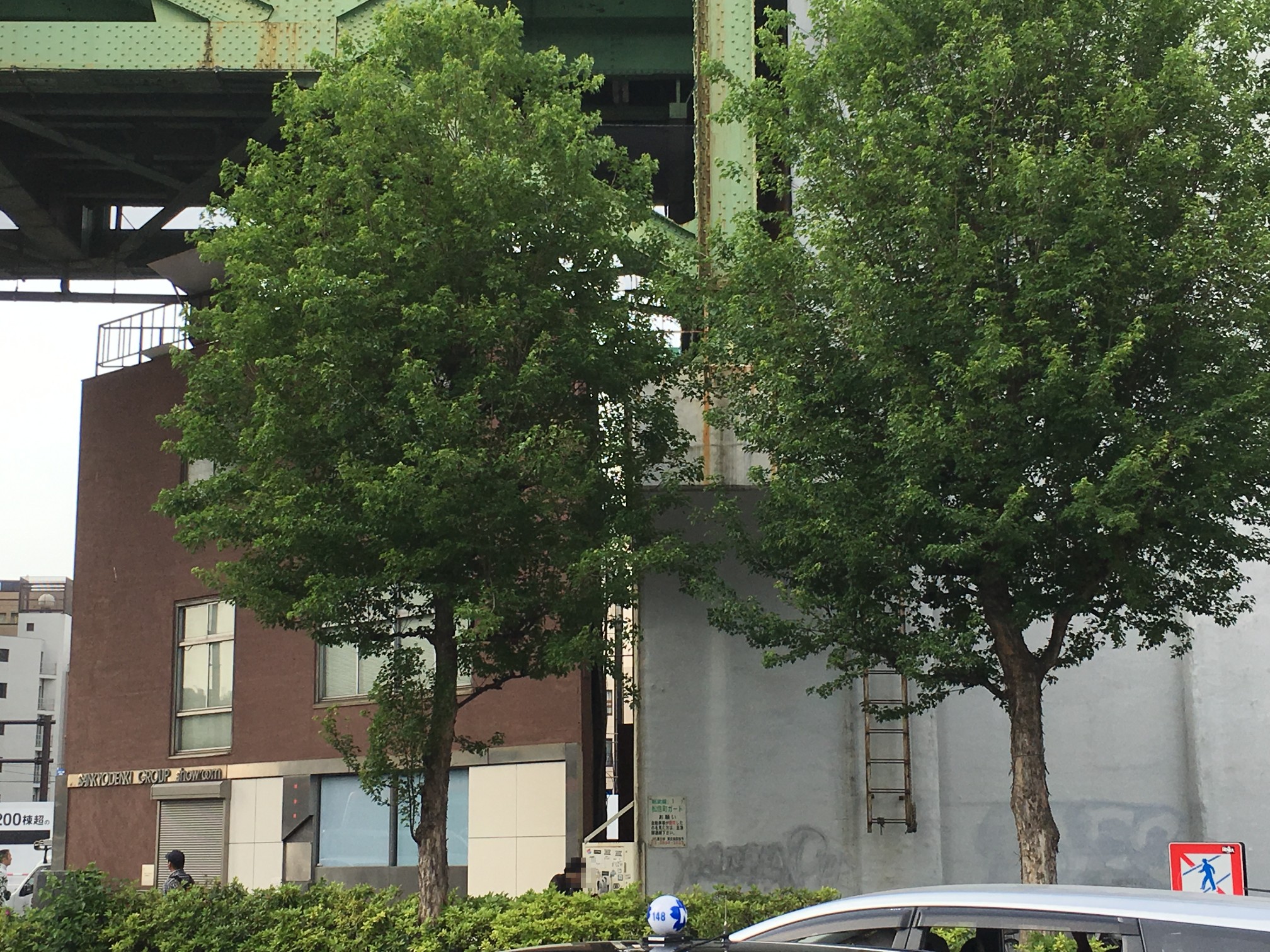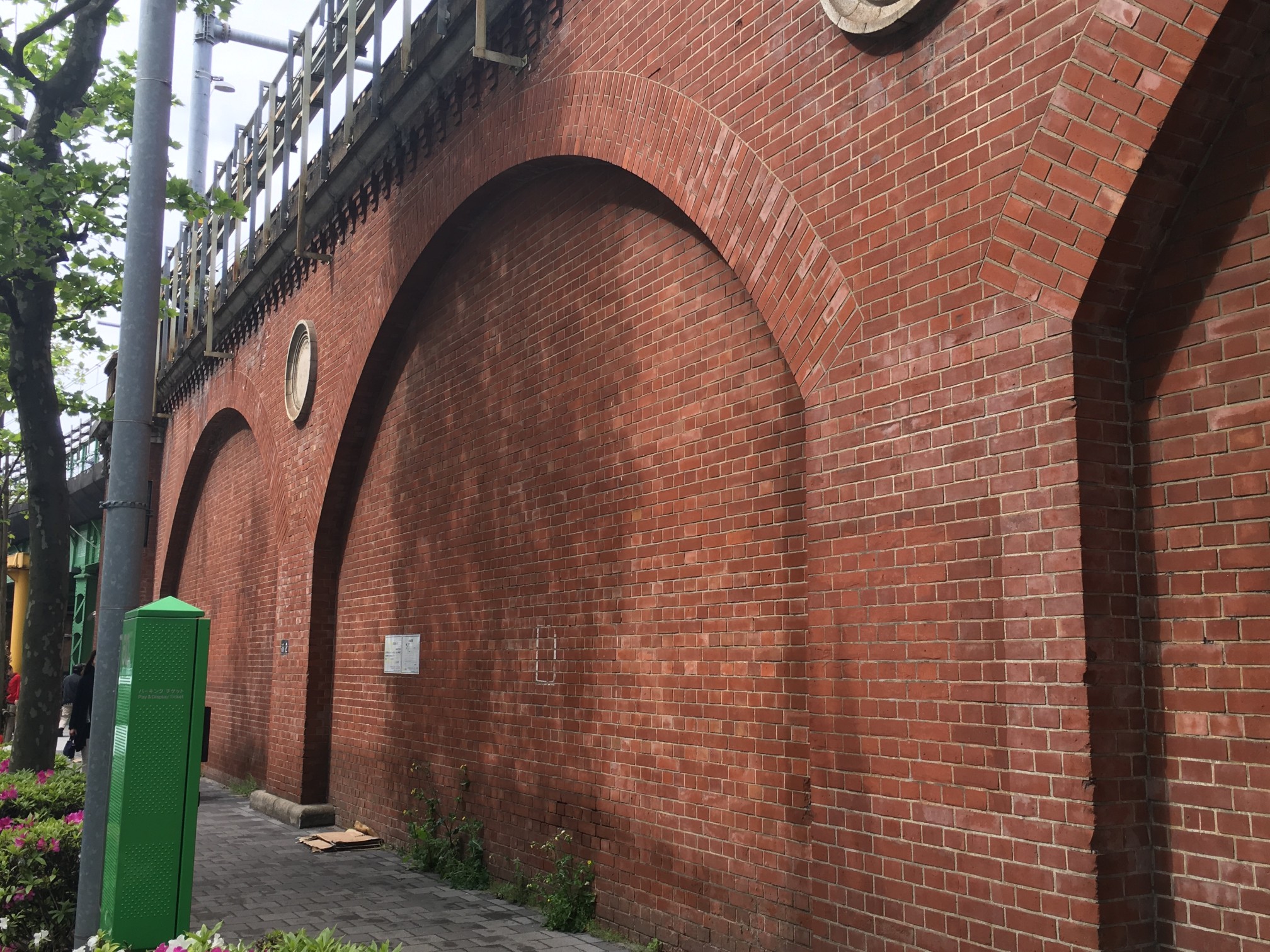 そのプランターが並んでいる近辺で、高架の側面から柱が立っている箇所はここしか無かったので、いろいろ迷ったのですが、ここかなー、と。