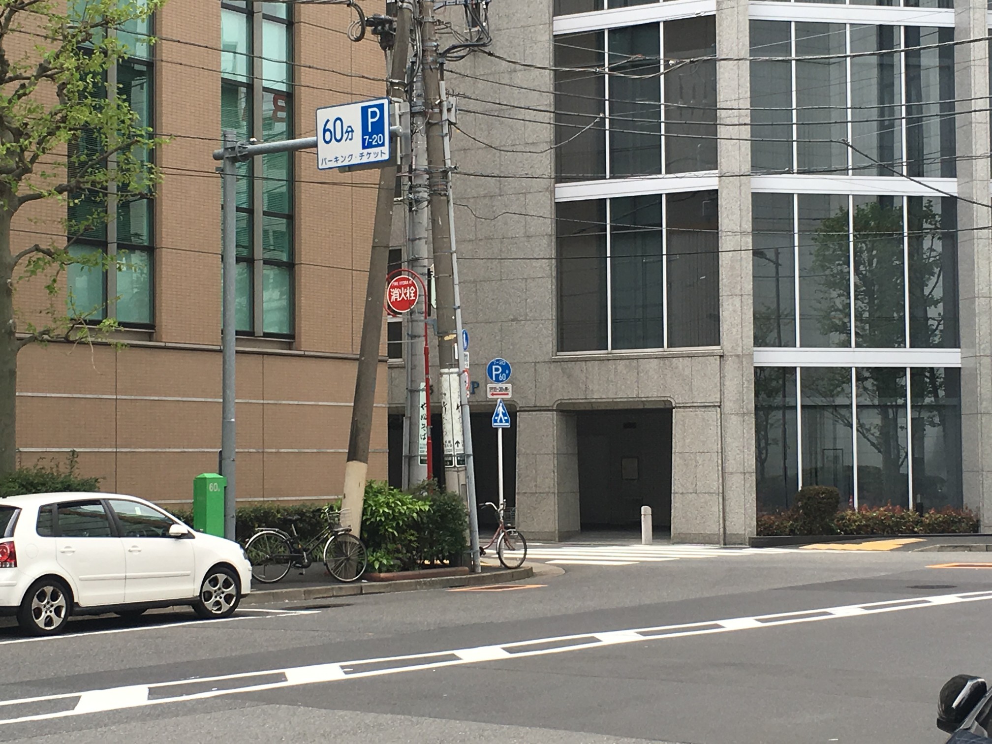 道の向かいの建物を目印にしようとしたけど、特徴が微妙で、しばらく見つかりませんでした。